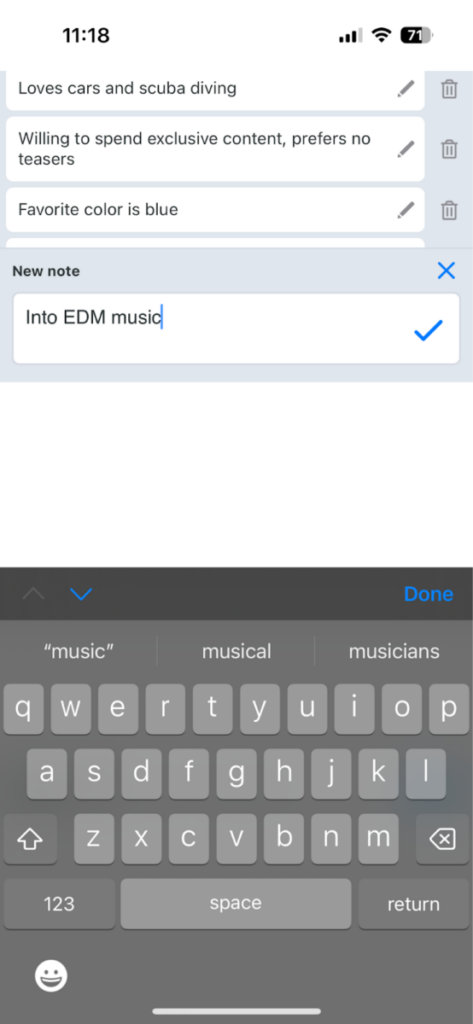 Fans feel the same way. When you remember their hobbies, birthday, or favorite type of content, they know you care. This makes them want to chat with you more.